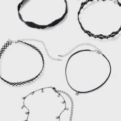 Lace Chain & Bead Choker Set 5pc – Wild Fable™ Black: Lobster Claw Clasp, Brass Material, 12″ Length