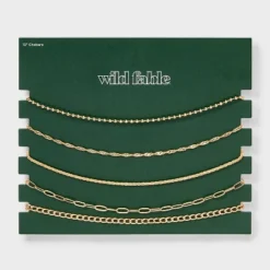 Chain Choker Necklace Set 5pc – Wild Fable™ Gold: Lobster Claw Clasp, Recycled Zinc, 12″ Length