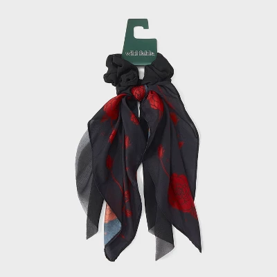 Two-piece hair twister set from Wild Fable™ includes one in solid black and one with rose print on a black backdrop. Designed with long tails for a chic touch. Help style ponytails or other hairdos and are suitable for all types of hair.