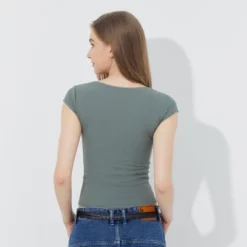 This Women’s Cap Sleeve Square Neck Rosette Top – Wild Fable™ Sage Green adds a soft, stylish touch to your everyday look. Made with lightweight fabric, it features a flattering square neckline and delicate rosette details that give it a charming twist. The fitted silhouette pairs well with jeans, skirts or layered under jackets for a versatile outfit. Whether you’re out with friends or running errands, it’s easy to wear and easy to love.