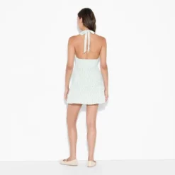 Poplin A-line dress from Wild Fable™ with a boat neckline. Features smocked front and back. Tailored in a sleeveless, mini-length silhouette. Made from lightweight cotton-recycled cotton fabric for breathable all-day wear. Pullover style completes the design with easy on and off.