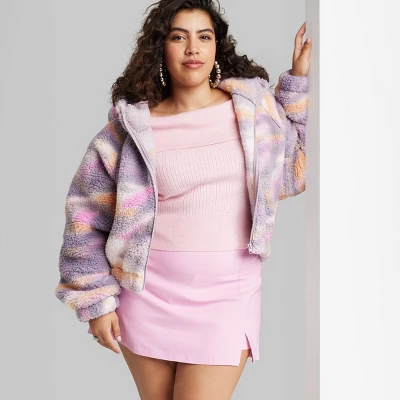 Solid-color bodycon skort from Wild Fable™ in a mini length. Made of heavyweight twill fabric for comfortable wear. Tailored in a slim-fit silhouette with a high-rise waist, a side zipper and back elastic for comfortable wear. A notched front accent completes the look with additional flair.