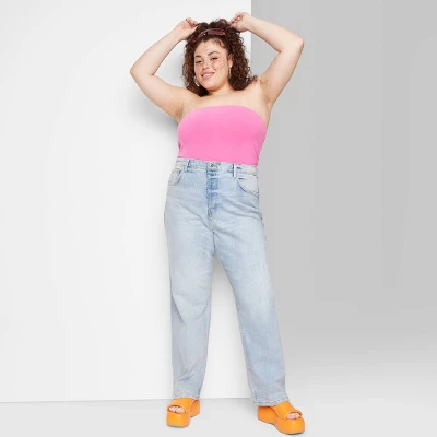 Full-length jeans from Wild Fable™ with a light-wash finish and distressed details. Tailored in a straight fit with a sculpting, super high-rise cut. Sport a belt-loop waistband with zip fly and button fastening for a secure fit. Made of cotton with a hint of stretch for breathable wear that moves with you. Five handy pockets complete the look.